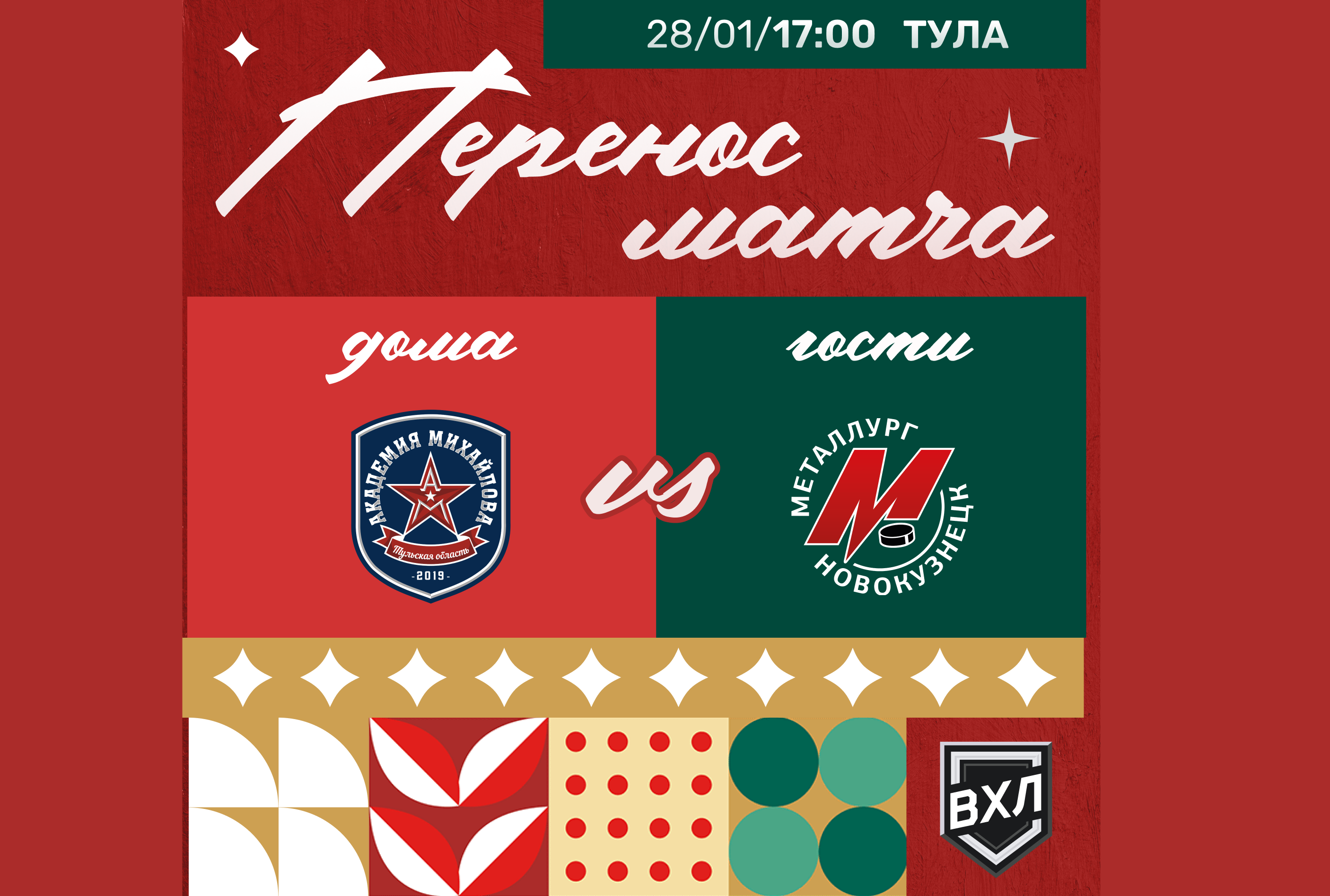Отмененный из-за погодных условий матч «Металлург» - АКМ пройдет в Туле 28 января 2024 года в 17:00.